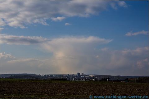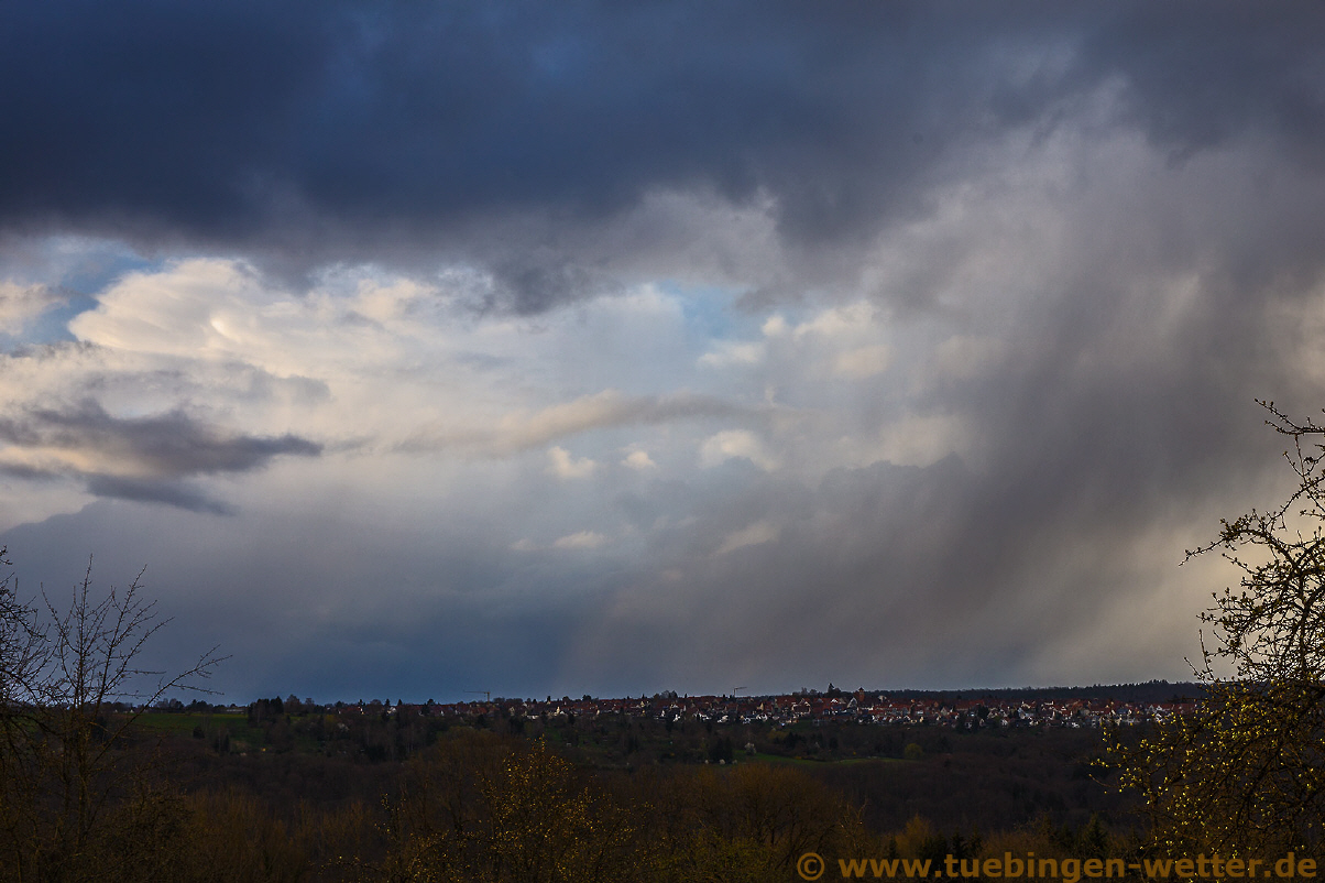 Nachdem der Freitag und Samstag trüb und regnerisch war, hat sich der Frühling am Sonntagnachmittag doch noch von seiner schönsten Seite präsentiert. Der Sonntagmorgen war zwar erst ziemlich windig und trübe, aber die Temperaturen sind am Nachmittag doch auf Werte um die 16°C, bei strahlend blauem Himmel, gestiegen. Für die kommende Woche sieht es sehr freundlich und mild aus, wobei die Temperaturen auch mal die 20°C erreichen können. Tagsüber sind meist hohe Wolken am Himmel, und gegen Wochenmitte kann Vormittags auch mal zäher Hochnebel mit dabei sein. Nachtfrost wird es wohl nur noch in den Hochlagen der Schwäbischen Alb geben. Hier ein Bild aus Tübingen-Hirschau von heute bei bestem Frühlingswetter.
