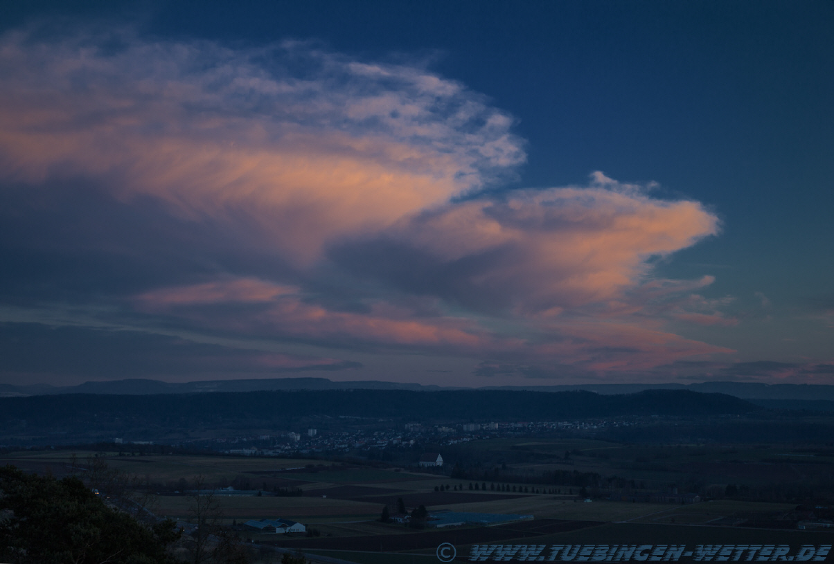 Heute, bei noch wunderschönem Wetter und angenehmen Plusgraden auf der Schwäbischen Alb bei Salmendingen. Leider ist dann schon wieder schluß mit dem Sonnenschein, da ein Tief aus Frankreich kommend, vorerst wieder für graues, ungemütliches Schmuddelwetter sorgt. Hinter der Burg Hohenzollern, erkennt man schon die Ausläufer des Tiefdruckgebietes.