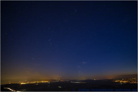 In der Bildmitte auf Höhe der Tannenbaumspitze überhalb der Venus, ist noch der Mars zu erkennen.