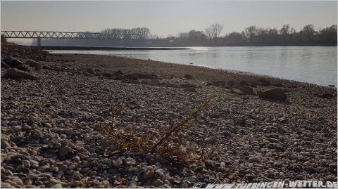 Auch der November fällt deutlich zu trocken aus, wie das Bild oben vom Rhein bei Germersheim vom 17. November eindrucksvoll zeigt.