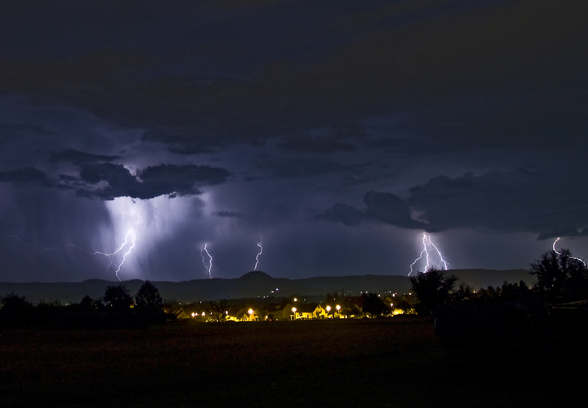 Von Dienstag auf Mittwochnacht hat ein Gewitter den Landkreis Tübingen gestreift, welches eine wunderschöne Blitzshow hervor brachte. Anbei ein paar Bilder, die in der nähe von Degerschlacht im Landkreis Reutlingen entstanden sind. Bei den ersten 3 Bildern sieht man den Rossberg so ziemlich genau in der Bildmitte. Im Vordergrund vom Rossberg kann man das Käpfle bei Gönningen/Bronnweiler sehen. Anbei der Link zu Tagblatt-Online zu den Nachtgewittern.