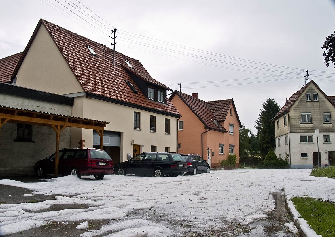 Hier in Kleinengstingen gab es beeindruckende Hagelansammlungen.