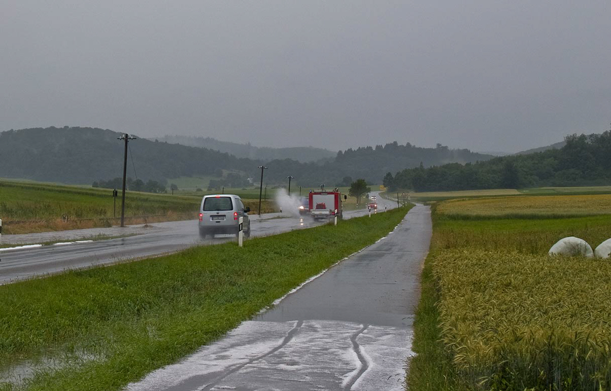 Die Feuerwehr, hier bei Kohlstetten, hatte an diesem Tag wieder alle Hände voll zu tun.
