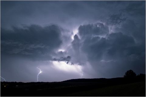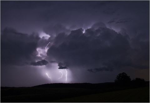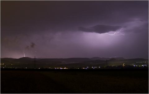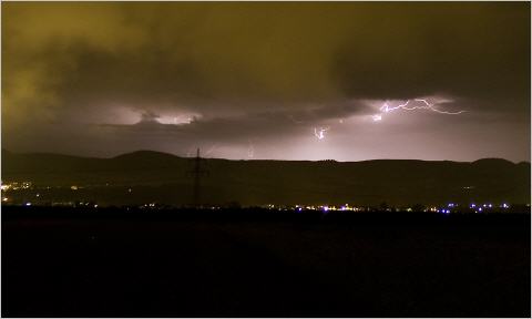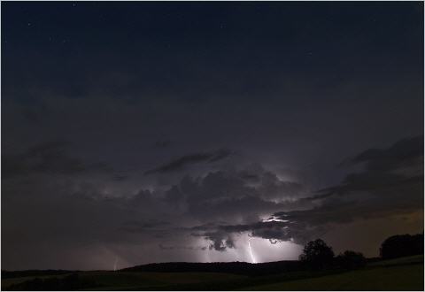 Gegen 23.30 Uhr entfernte sich dann das Gewitter so langsam von unserem Standort und neue Zellen tauchten mit kräftigem Blitzgeflacker am Horizont auf. Die Gewitternacht dauerte noch bis ca. 6 Uhr am darauffolgendem Tag, bis sich die letzten Gewitter über die Alb nach Bayern verzogen hatten.
