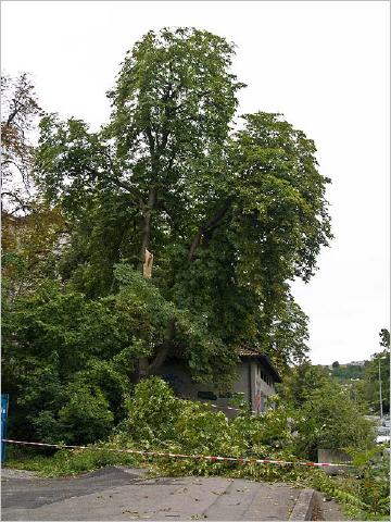 Hier Gewittersturmschäden in der Gmelinstrasse und im Stadtfriedhof.