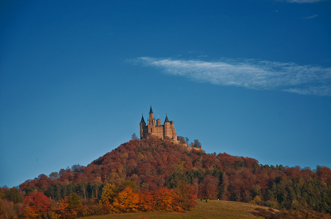 Zeller Horn, mit Blick auf die Burg Hohenzollern um 20.22 Uhr, als gerade zufällig eine Sternschnuppe über der Burg nieder ging.