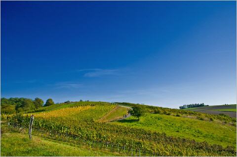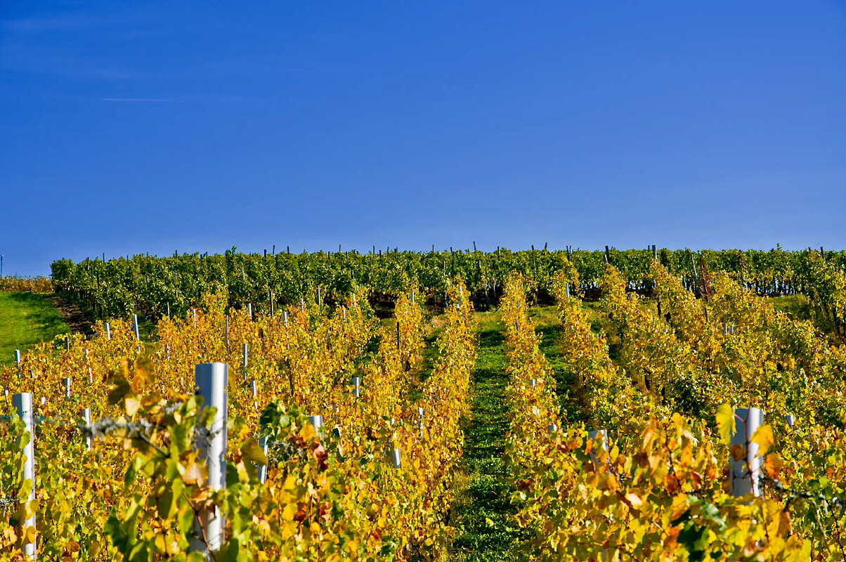 Die Weinberge erstrahlen im herbstlichem Glanz.