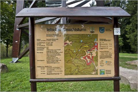 Die oberste Plattform des Turmes ist genau auf 1000 Meter über Meereshöhe. Von dort aus hat man eine fast 360° Rundumsicht, mit einer prima Aussicht zum Klippeneck.