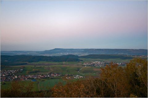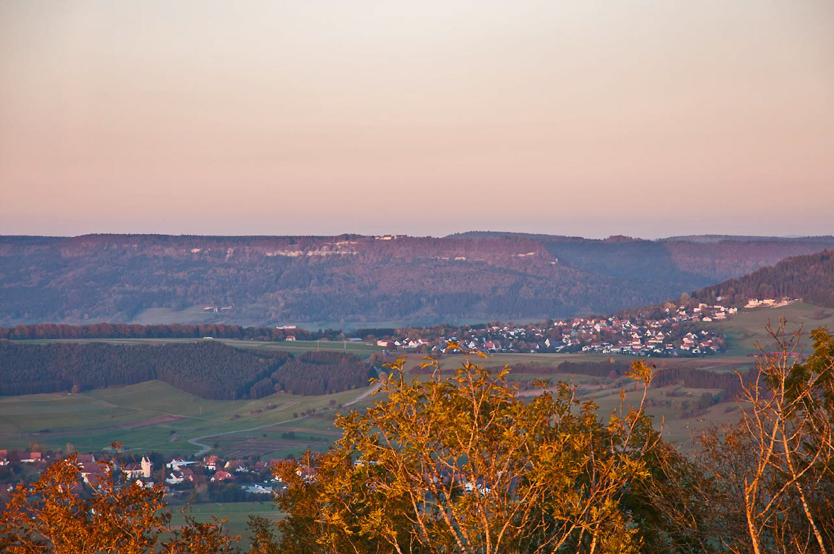 Der Lemberg, mitte links im Bild, ist mit seinen 1015 Meter, der höchste Berg der Schwäbischen Alb. Hier zusammen mit dem Klippeneck in der Übersicht auf dem Bild.