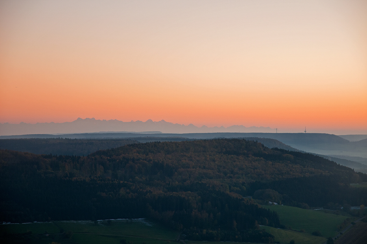 Die Schweizer Alpen im Hintergrund.
