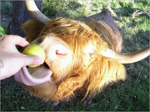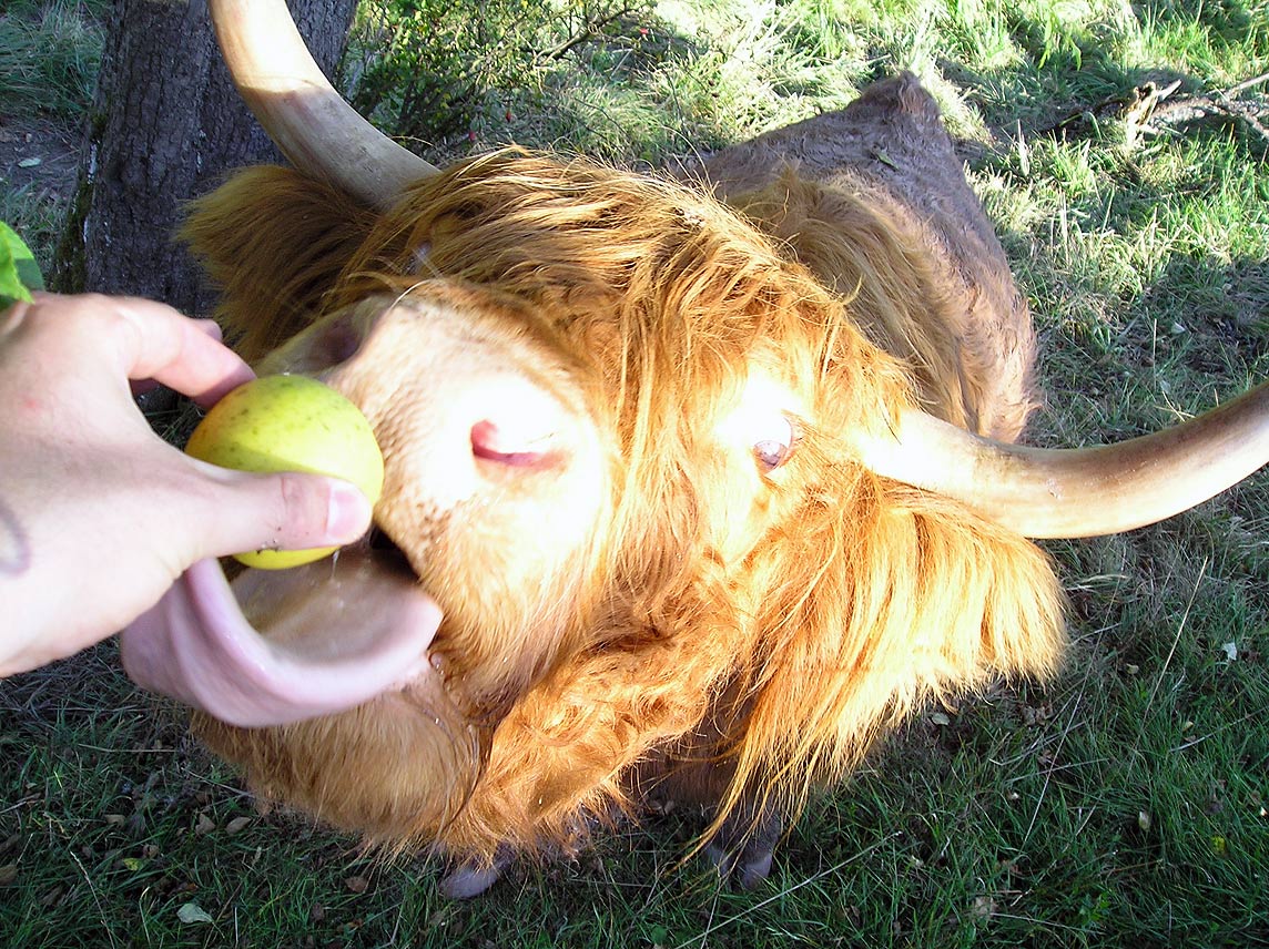 Auch die Rindviecher ? (Wer den genauen Namen dieses Tieres kennt, bitte Mail an uns !) haben den tollen Tag genossen und haben sich die Äpfel schmecken lassen.