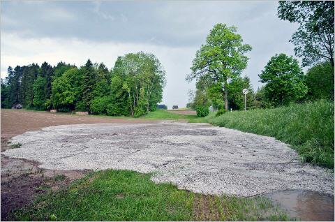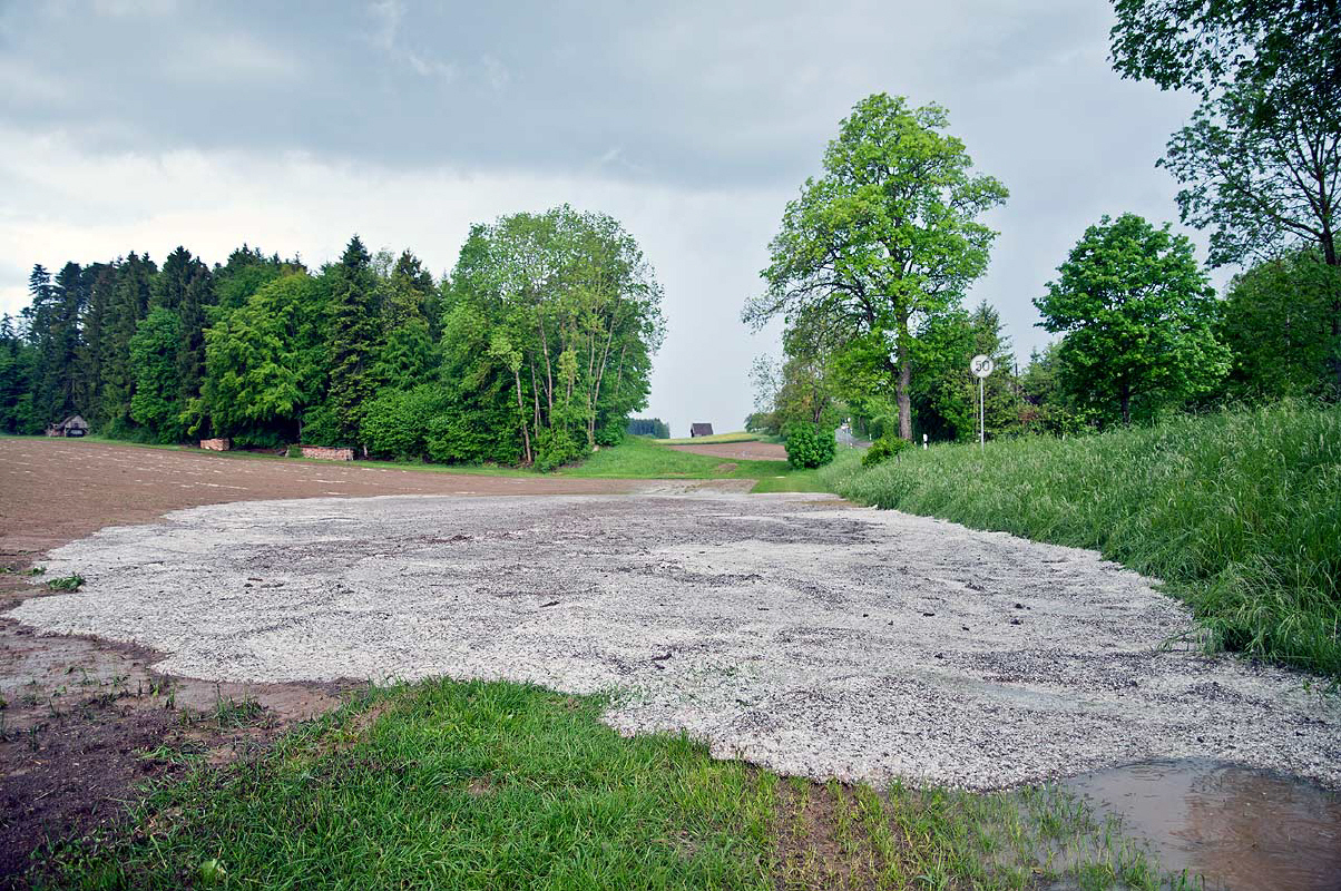 Um 19.38 Uhr eine knappe Stunde später bei Sulz, hat diese Zelle dort für überspülte Strassen und Hagelansammlungen gesorgt. Der Hagel war dort bis ca. 1,5 cm groß.