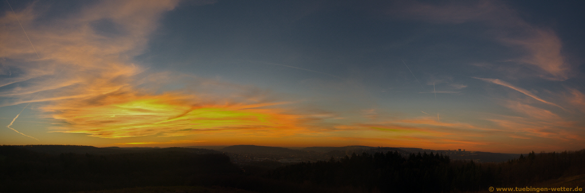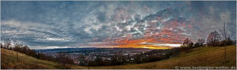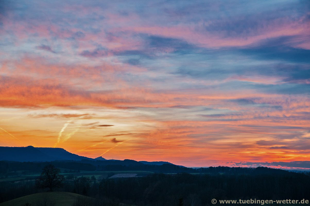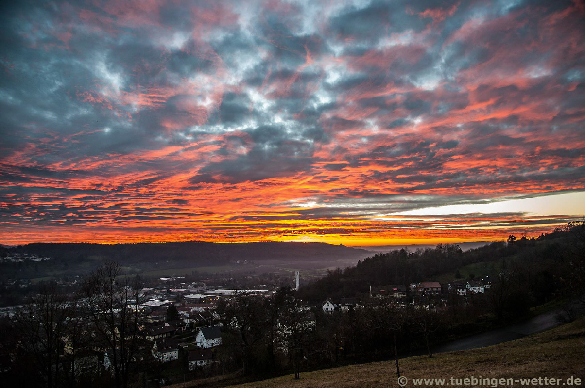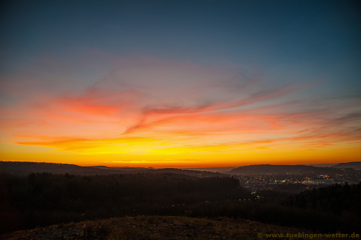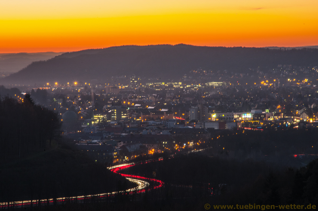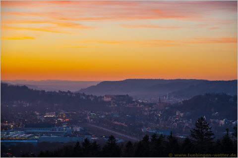 Beim Wetter wird in den nächsten Tagen nicht viel passieren. Dies liegt an einem stabilen Hochdruckgebiet, das über Europa liegt und sich vorerst so schnell nicht verlagern wird. Für unser Wetter bedeutet dies erstmal keine Änderungen. Also freuen wir uns auf viel blauen Himmel mit Tageshöchsttemperaturen bis knapp an die 10°C und Nachtfrost, bei klarem Himmel und evt. Nebel in den Morgenstunden. Anbei ein paar Bilder von diesem Abend von Tübingen.