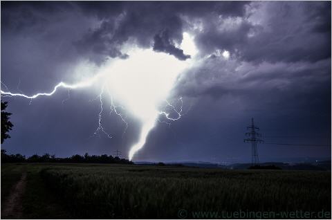 Nachdem es heute Nacht/Morgen schon erste Gewitter mit heftigem Blitz und Donner, sowie kleinem Hagel um Tübingen/Herrenberg herum gegeben hatte, wird es heute im laufe des Nachmittags/Abends und morgen wohl erneut Gewitter geben, die teils Unwetterartig ausfallen können. Anbei ein paar Bilder von heute Morgen, aufgenommen bei Herrenberg.