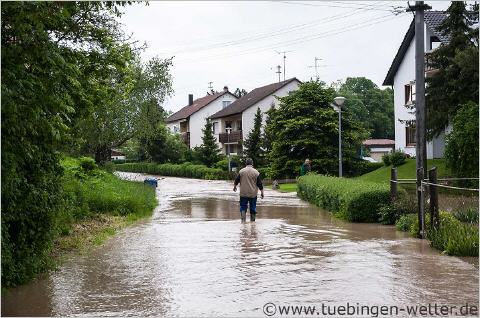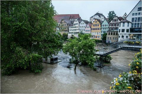 Trotz meteorologischem Sommeranfang ist von diesem noch weit und breit nichts zu sehen, im Gegenteil. Durch die in der Nacht weiter fallenden Niederschläge, bleibt die Hochwassergefahr in weiten teilen des Landes weiter bestehen. Über die aktuelle Lage und die Entwicklung, können Sie sich auf den Seiten der Hochwasserzentrale, der Unwetterzentrale und des Deutschen Wetterdienstes informieren ! So könnte es um die Vormittagsstunden des 1.Juni in Tübingen auch wieder aussehen, hier ein Bild vom 2. Februar diesen Jahres.