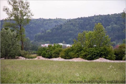 Kurz vor 5 Uhr, so sieht das Neckartal bei Kirchentellinsfurt aus, wenn der Neckar auf 5,82 Meter angestiegen ist. Man müsste eigentlich die Kirchentellinsfurter Baggerseen ausmachen können, aber das ganze Neckartal ist ein einziger rießengroßer See !