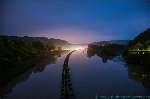 Morgens zwischen 5.30 und 6 Uhr Uhr in Tübingen, der Neckar steht immer noch bei ungefähr 5,70 Meter.