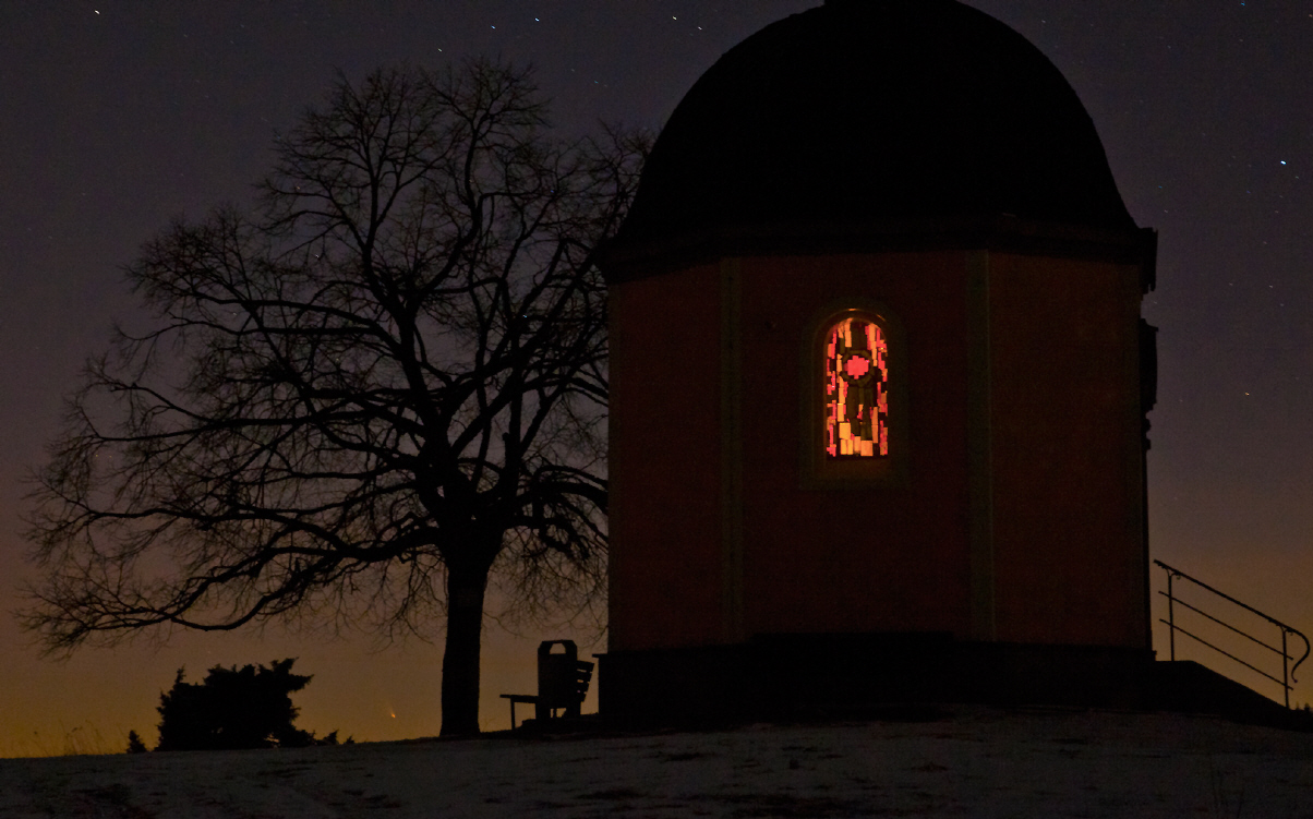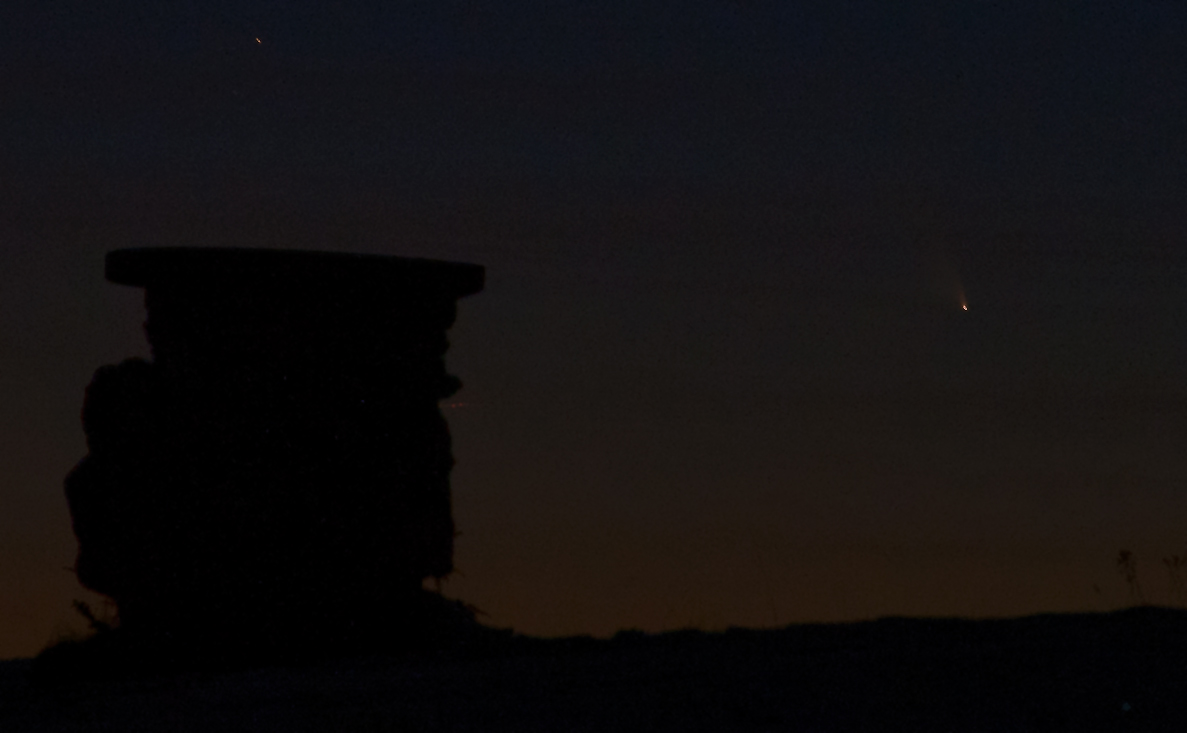 Heute ist leider vorerst der letzte Tag um den Kometen Panstarrs zu beobachten, eine Schlechtwetterfront ist im Anzug und wird uns vorerst die Sicht auf den Kometen nehmen. Es gab aber heute Abend nochmal die Gelegenheit ein paar Bilder zu schießen, wie die folgenden vom Alten Berg (auf dem großen Heuberg) auf der Schwäbischen Alb bei Tuttlingen.