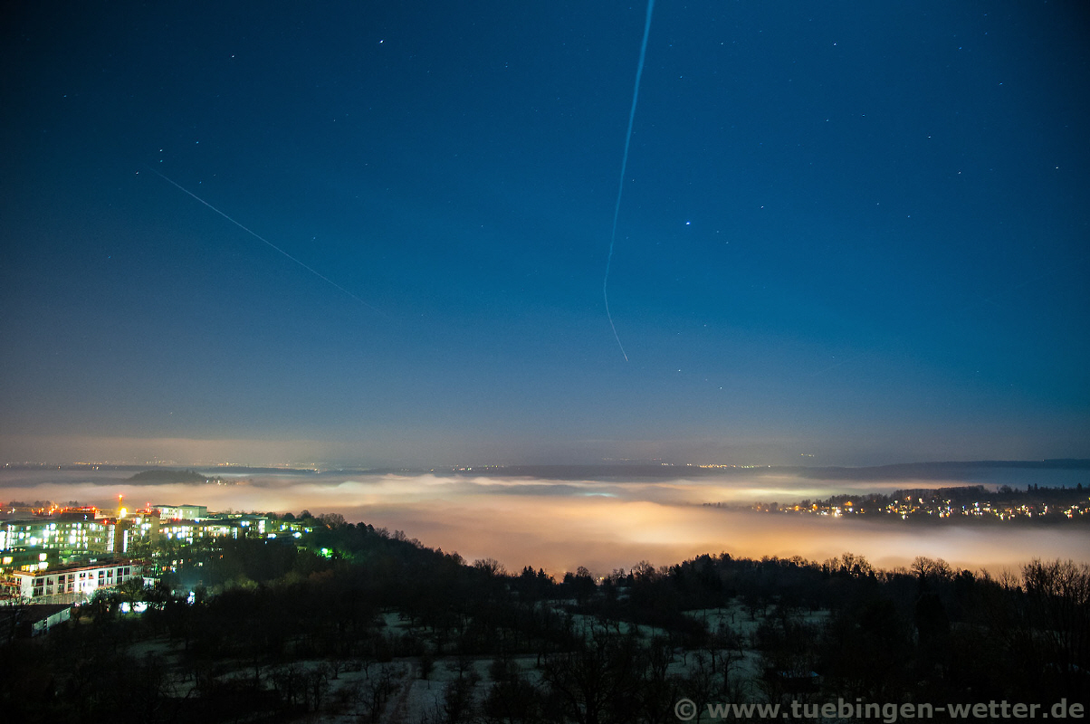 Tief Ulla sorgt, anderst als im Norden, bei uns eher weniger für Sturm. In der Region werden Temperaturen über 10°C am Samstag erwartet, die Ulla für uns im Gepäck hat. Leider wird es dabei aber nicht ganz trocken bleiben. Der Sonntag wird kühler und regnerisch, und der Winter ist nach wie vor erstmal nicht in sicht. Die kommende Woche wird wie die letzten Wochen zu warm und wechselhaft beginnen, und nur in der Nacht bei aufklarendem Himmel kann es Frost geben. Anbei ein Zeitraffer vom heutigen Tag, knapp 4 Stunden in 1:19 Minuten. Bei 0:20 Minuten sieht man eine sogenannte Hole Punch Cloud durchs Bild ziehen (siehe Bericht vom 12.12.2013).