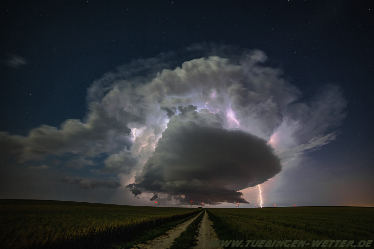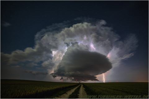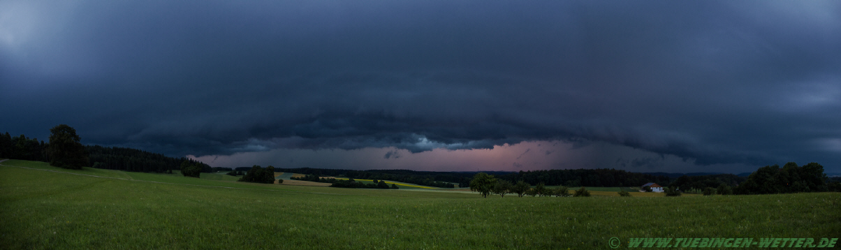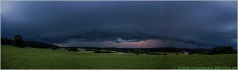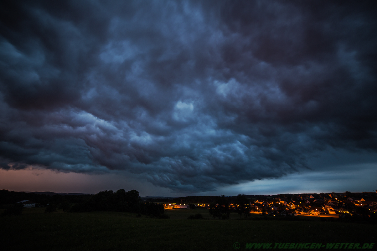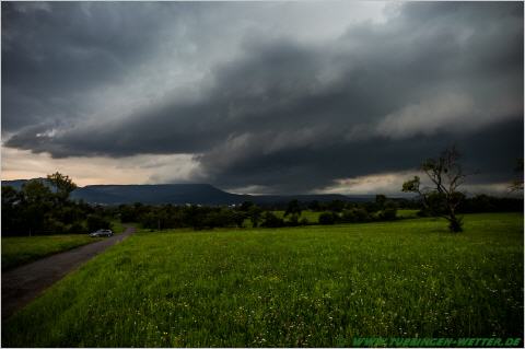 Genau vor einem Jahr suchte ein verherender Hagelsturm die Region Tübingen, Reutlingen heim, der manchem noch lange im Gedächtnis bleiben wird. Die Versicherungen schätzen die entstandenen Schäden auf nunmehr ca. 1,9 Milliarden Euro, und ist somit das teuerste Hagelereignis, das bisher in Deutschland registriert wurde. An einem solchen Tag wie heute, wo wieder Unwetter mit großen Regenmengen prognostiziert wurde, hatte wohl schon so mancher ein schlechtes Gefühl, als gegen 19.30 Uhr wieder bedrohliche Wolken am Horizont aufzogen. Hier ein Bild vom Aufzug bei Ofterdingen.