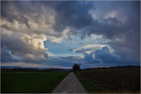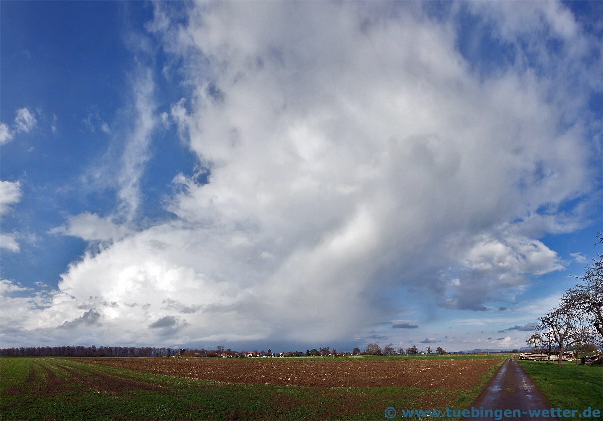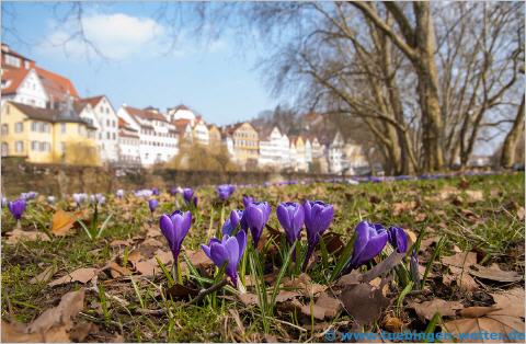 Nachdem der Freitag und Samstag trüb und regnerisch war, hat sich der Frühling am Sonntagnachmittag doch noch von seiner schönsten Seite präsentiert. Der Sonntagmorgen war zwar erst ziemlich windig und trübe, aber die Temperaturen sind am Nachmittag doch auf Werte um die 16°C, bei strahlend blauem Himmel, gestiegen. Für die kommende Woche sieht es sehr freundlich und mild aus, wobei die Temperaturen auch mal die 20°C erreichen können. Tagsüber sind meist hohe Wolken am Himmel, und gegen Wochenmitte kann Vormittags auch mal zäher Hochnebel mit dabei sein. Nachtfrost wird es wohl nur noch in den Hochlagen der Schwäbischen Alb geben. Hier ein Bild aus Tübingen-Hirschau von heute bei bestem Frühlingswetter.