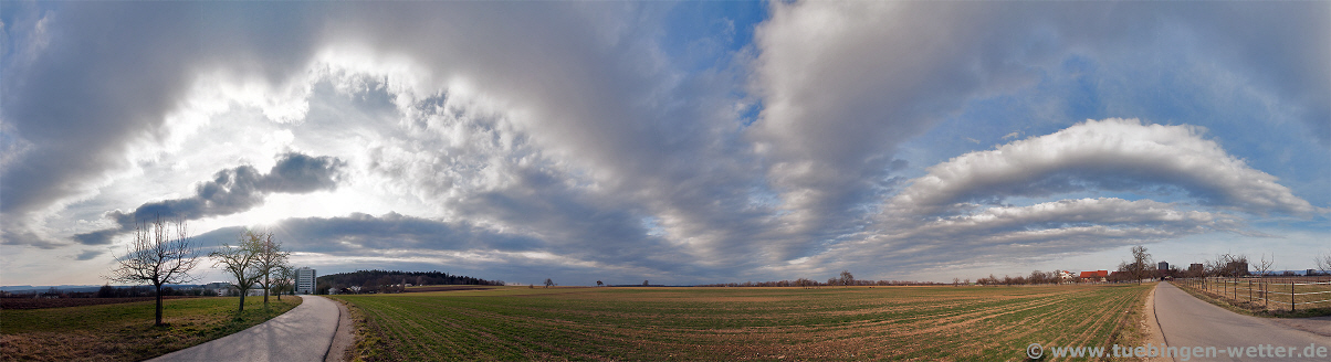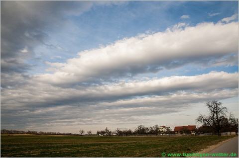 Recht durchwachsen starten wir in den meteorologischen Frühlingsanfang. Frost wird es nur noch in klaren Nächten bzw. bei aufklarendem Himmel geben. Tagsüber sind Temperaturen zwischen 5°C und 10°C, bei Sonnenschein auch über 10°C möglich. Leider wird es aber immer wieder zwischendurch Schauer bzw. Regen geben, bei eher trübem Wetter und die Aussichten auf länger anhaltenden Sonnenschein sind eher gering. Dieser Tage gab es etwas interessantes am Himmel zu beobachten, nämlich sogenannte Stratocumulus stratiformis Translucidus -->(Wolkenunterart) Perlucidus -->(Wolkenunterart) Undulatus. Ein ziemlich langer Name für diese Art von Wolkenformation, und in dieser Form auch nicht oft zu beobachten.