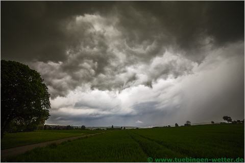 Nach den Gewittergüssen gestern, die Regenmengen von fast 50 Liter pro Quadratmeter innerhalb von 1 Stunde über Tübingen abgeladen hatten, geht es am heutigen Tag der Arbeit erst einmal nass weiter. Schauer und Gewitter wird es ab dem Mittag geben, nur die Regenmengen werden wohl geringer ausfallen, die Unwetterzentrale hat bereits Vorwarnungen für den Landkreis Tübingen heraus gegeben. Am Freitag dann erneut Schauer und Gewitter, Samstag dann nasskalt um die 14°C. Für den Sonntag, sieht es aus jetziger sicht nach schönem Ausflugswetter aus, wobei die Temperaturen ein bischen wärmer als am Samstag werden können. Das Bild oben zeigt übrigens den Gewitteraufzug vom 30.4.2014 bei Pfrondorf, welches für kleinere Überschwemmungen und Behinderungen im Strassenverkehr in und um Tübingen gesorgt hatte. Einen Bericht im Tagblatt-Online dazu, finden Sie hier.