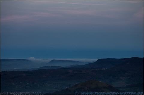 Und ein Blick in Richtung Ostalb, wo der dicke Nebel noch auf der Alb hängt.