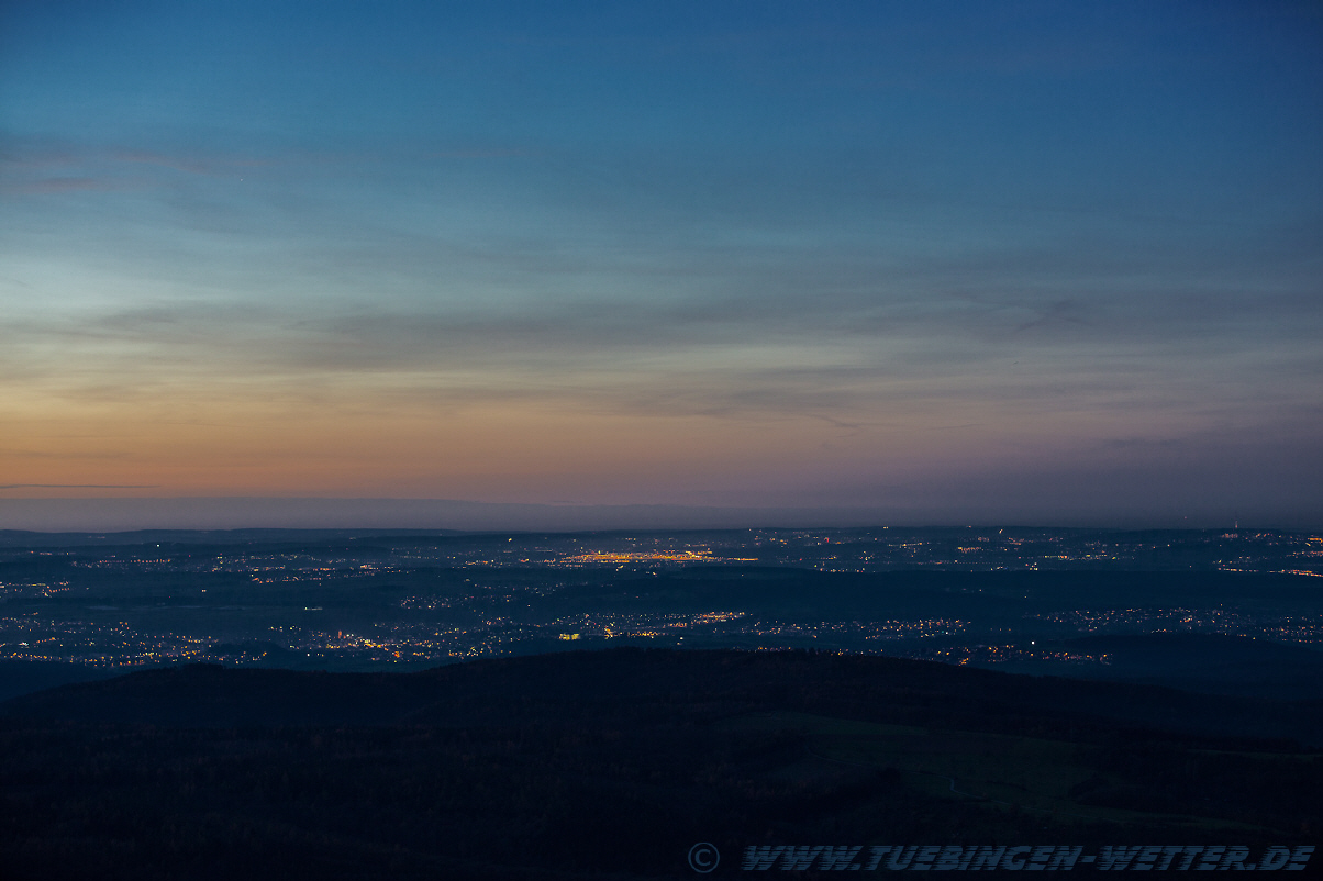 In der Bildmitte der Stuttgarter Flughafen mit seinen Lichtern.