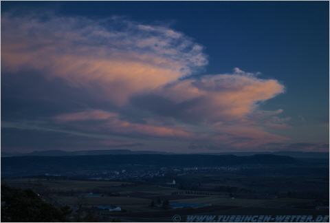 Heute, bei noch wunderschönem Wetter und angenehmen Plusgraden auf der Schwäbischen Alb bei Salmendingen. Leider ist dann schon wieder schluß mit dem Sonnenschein, da ein Tief aus Frankreich kommend, vorerst wieder für graues, ungemütliches Schmuddelwetter sorgt. Hinter der Burg Hohenzollern, erkennt man schon die Ausläufer des Tiefdruckgebietes.