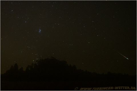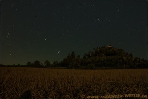 Aber außer Hochsommer hat der August noch etwas besonderes zu bieten, er ist nämlich auch Monat der Perseiden. Für Sternenfreunde eines der Highlights des Jahres, denn es kann in der Nacht zum 12. August der Höhepunkt dieses wiederkehrenden Meteorstroms beobachtet werden. Dieser soll in diesem Jahr besonders viele Meteore oder wie der Volksmund sagt "Sternschnuppen" hervorbringen, nämlich bis zu 150 Stück in der Stunde. Einen Blick in den Nachthimmel die Wochen vor und nach dem 12 August, lohnt sich auf alle Fälle. Hoffen wir also einmal, das die Nächte um den Höhepunkt herum klar bleiben und wir recht viele schöne Meteore beobachten können.