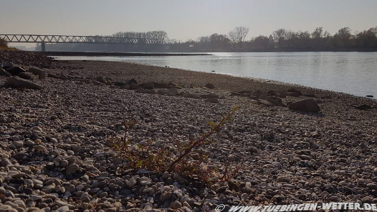 Auch der November fällt deutlich zu trocken aus, wie das Bild oben vom Rhein bei Germersheim vom 17. November eindrucksvoll zeigt.